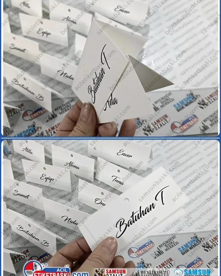1,50$Kişiye Özel Davetli İsim Yazılı Üçgen Masa Rezervasyon İsimliği
