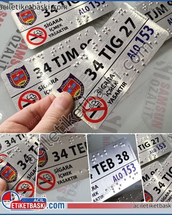 Ticari Taksi Plaka, Görme Engelli Braille Alfabe metal plaka