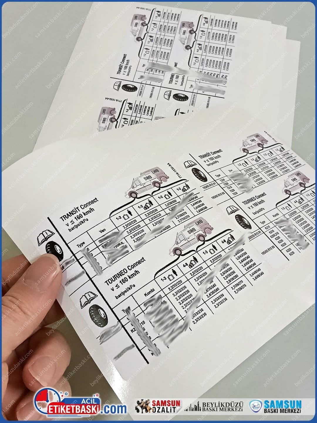 Ford Transit ve Tourneo Connect lastik basınç etiketlerimiz, orijinal değerlere sadık kalınarak suya ve dış etkenlere dayanıklı malzemelerden aynı gün üretilip hızlı kargo avantajıyla sunulmaktadır.