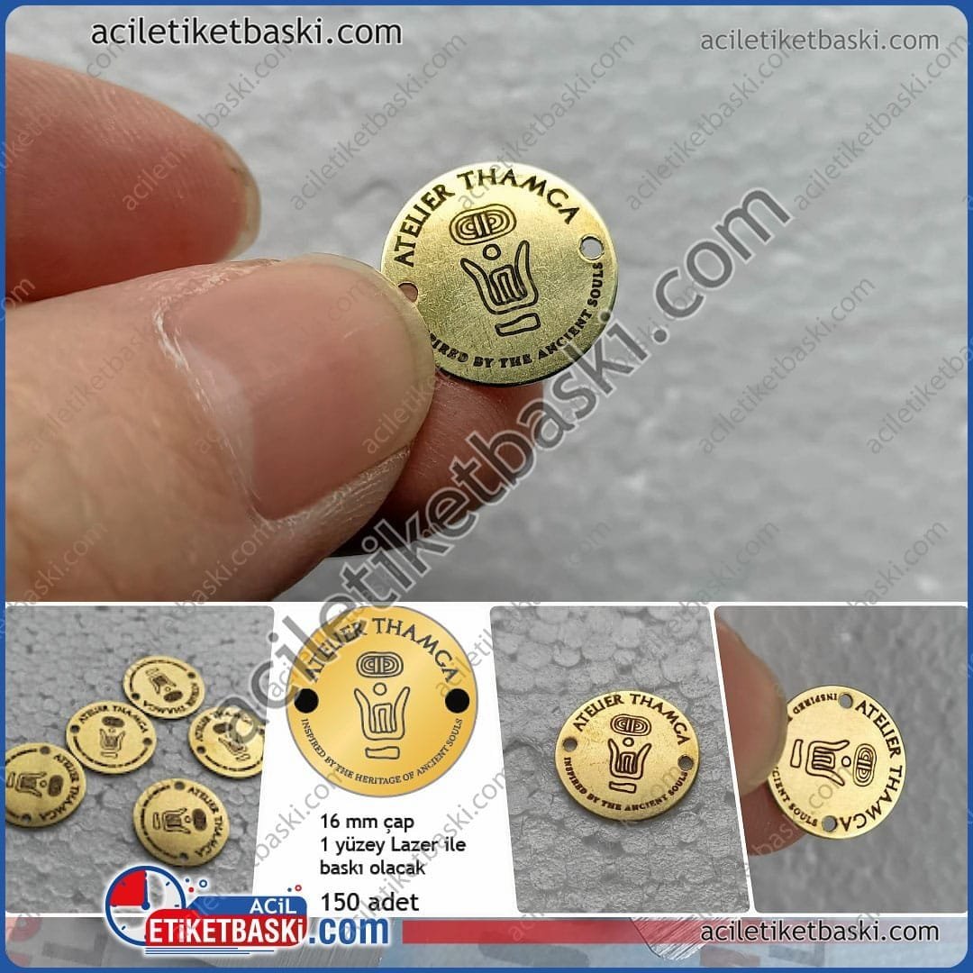 Pirinç Üzerine Lazer Baskılı Yuvarlak Metal Etiket – Kalıcı Logo Baskısı | Acil Metal Etiket Merkezi