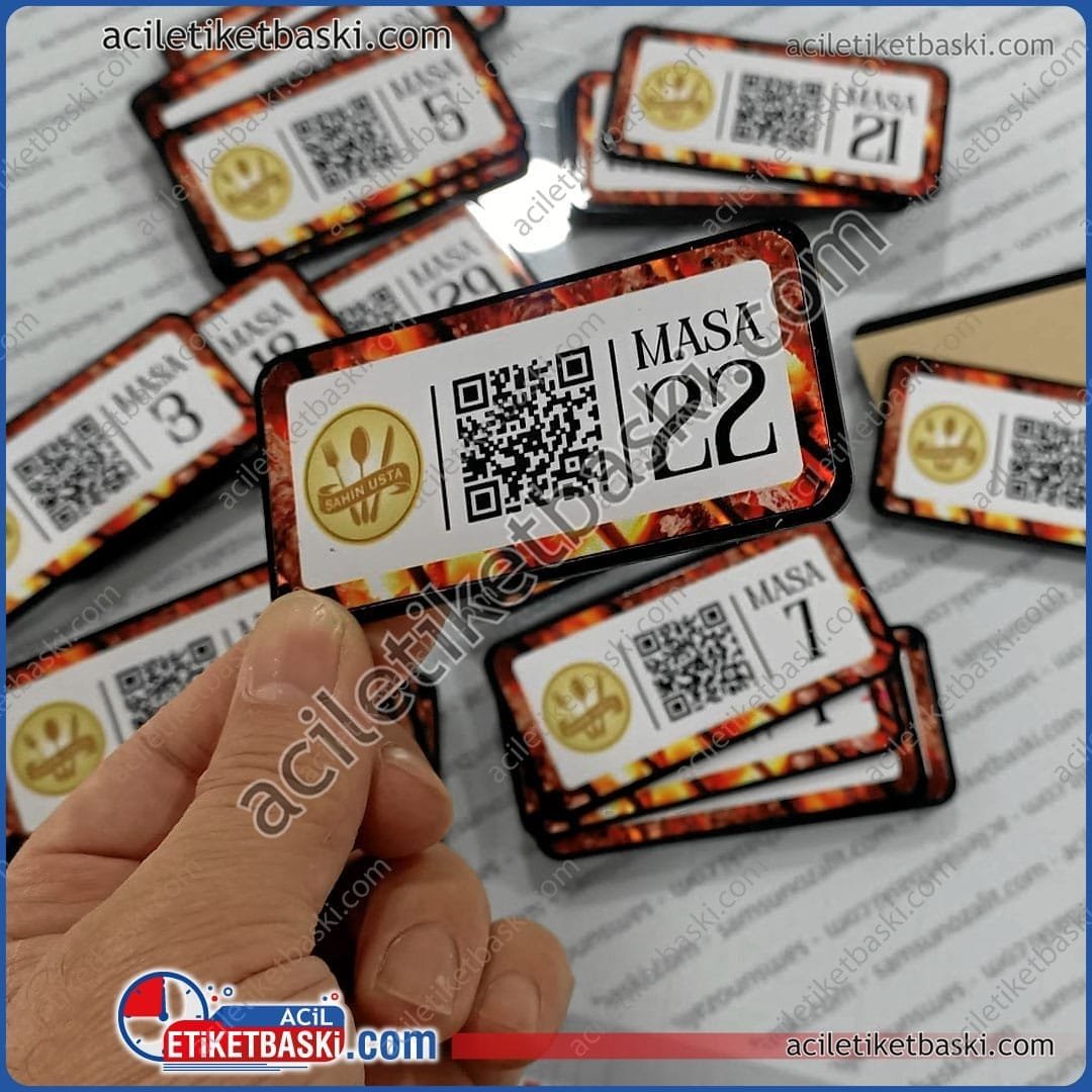 katmerci qr menü, masa üzeri metal etiket, pleksi qr kod baskı, restoran masa etiketi, renkli metal baskı merkezi, arkası bantlı qr etiket, aynı gün gönderim qr menü, kaliteli masa isimliği imalatı