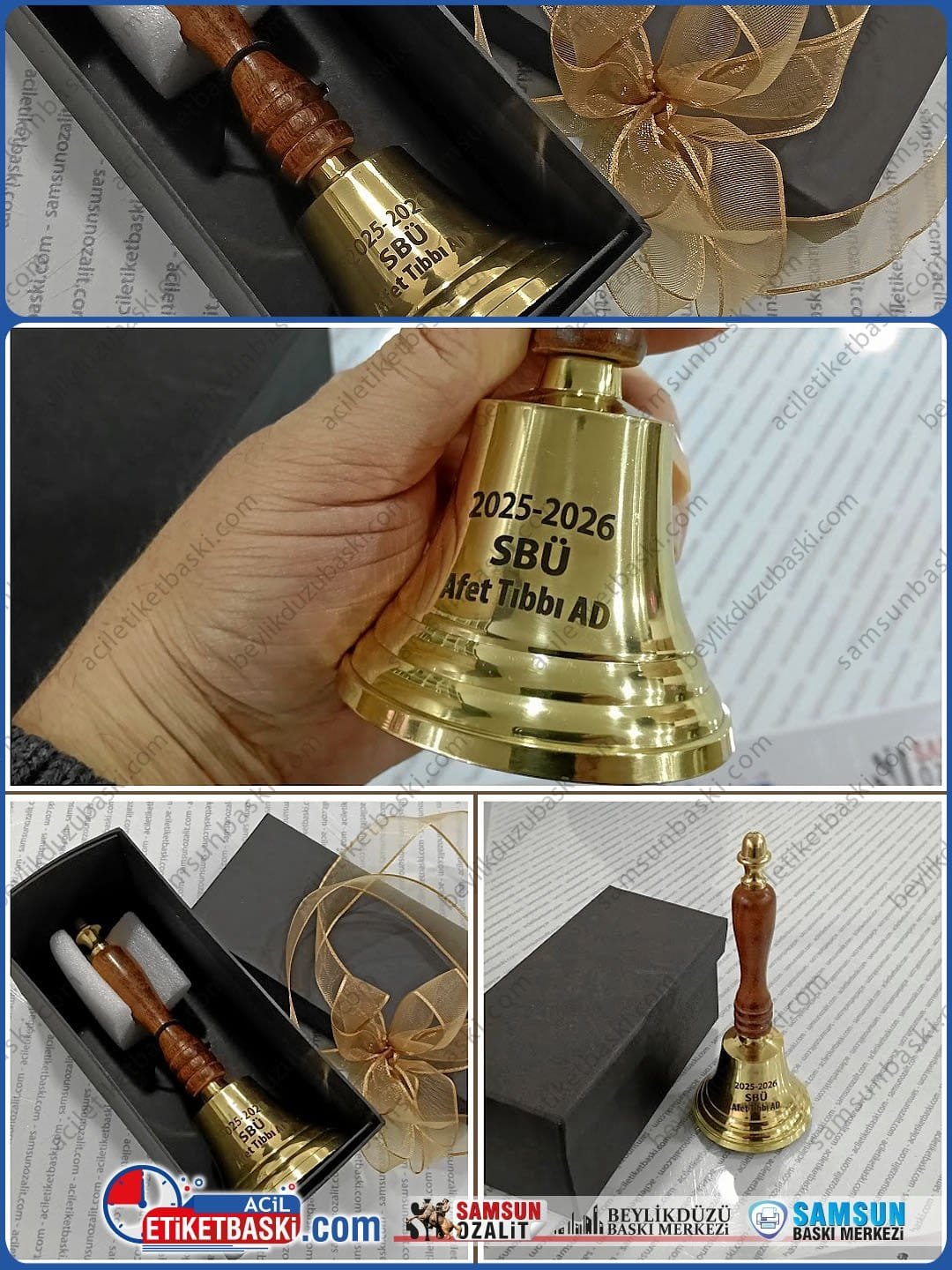 Müşterilerimiz tarafından gönderilen okul zili ve uyarı zili gibi pirinç metal ürünlere profesyonel lazer markalama Metal yüzeylerde asla silinmeyen kazıma yöntemiyle ömür boyu kalıcı ve yüksek hassasiyetli yazı kalitesi Okul zillerinden dekoratif objelere kadar her türlü metal eşya üzerine kişiselleştirilmiş metin ve logo işleme Tek adet veya seri üretim ayrımı yapmaksızın her türlü müşteri talebine odaklanan butik hizmet anlayışı Ürününüzü kargo ile gönderin profesyonel baskısını yapıp aynı özenle adresinize geri ulaştıralım