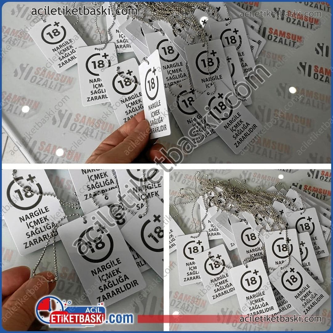 Nargile işletmeniz için resmi yönetmeliklere tam uyumlu uyarı etiketleri! “Nargile içmek sağlığa zararlıdır” yazılı özel tasarım etiket ve tabelalarımızla, zabıta denetimlerine sorunsuz şekilde hazır olun. Zincirli asma sistemimiz sayesinde, tabelalarınızı istediğiniz yere kolayca monte edebilirsiniz. Kafeler, nargile cafe’ler ve tüm tütün ürünü satış noktaları için özel olarak tasarladığımız bu ürünler, dayanıklı malzemelerden üretilmiştir. Resmi standartlara uygun boyut, yazı tipi ve renklerle üretim yapıyor, işletmenizin yasal gereklilikleri yerine getirmesini sağlıyoruz. Acil ihtiyaçlarınız için hızlı üretim imkanı!