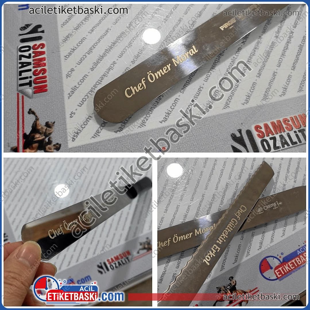 Pasta Bıçağı Üzerine Şef İsmi Yazılması – Kalıcı Lazer Markalama | Samsun Baskı Merkezi